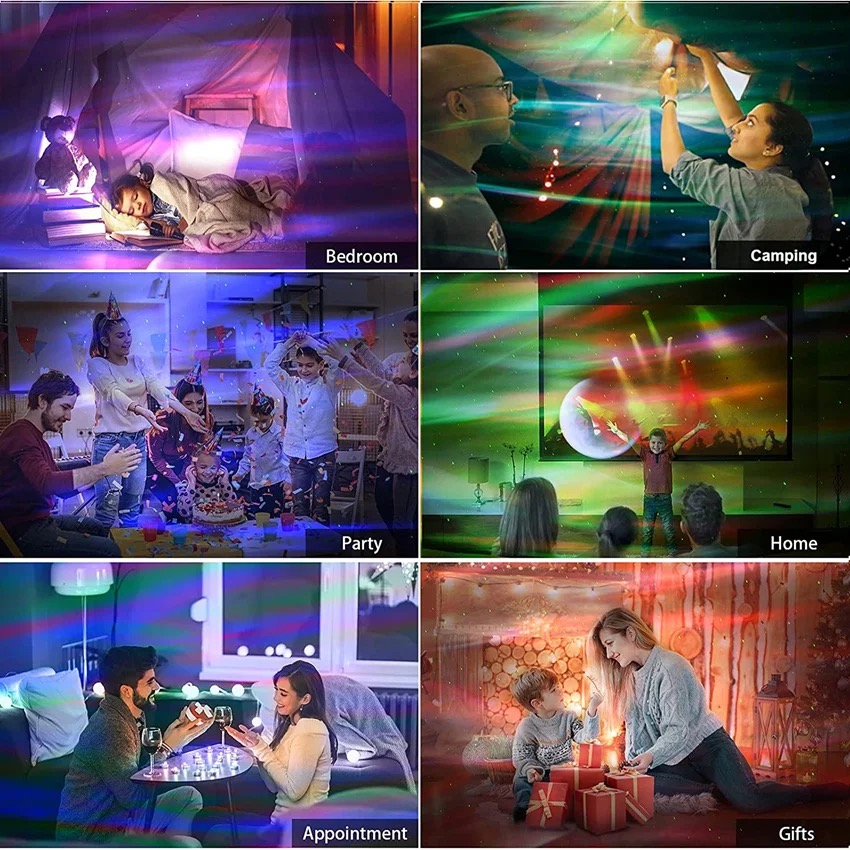 【پروژکتور شفق شب 3 در 1】 پروژکتور 3 در 1 شفق قطبی، نور ستاره و ماه را ترکیب می کند. 4 رنگ 55 نورپردازی