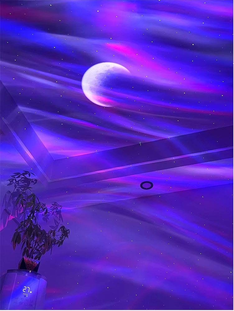【ریموت کنترل و اسپیکر بلوتوثی】 می توانید نیازهای خود را با ریموت کنترل تنظیم کنید، موج شفق قطبی یا آسمان پرستاره، ماه را انتخاب کنید.